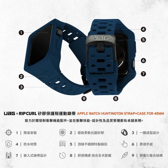 ONAIR|UAG x RIP CURL Apple Watch 矽膠保護殻運動錶帶 45mm