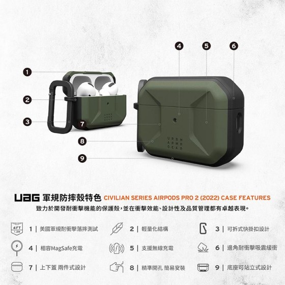 ONAIR|UAG x AirPods Pro 2 磁吸式耐衝擊簡約保護殼(支援Magsafe)