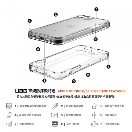 ONAIR|UAG 耐衝擊保護殼-極透明/全透明 iPhone 7/8/SE2/SE3(2022)