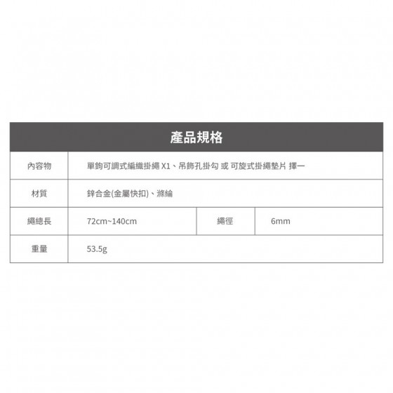 內容物:掛繩*1+可旋式掛繩墊片*1