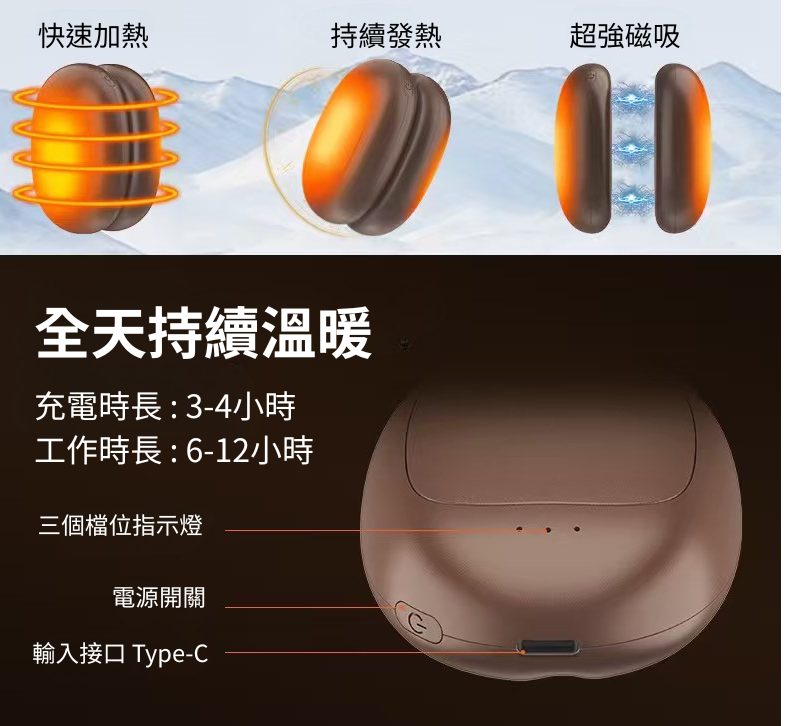 • 磁吸分體式電動暖手寶 ×1