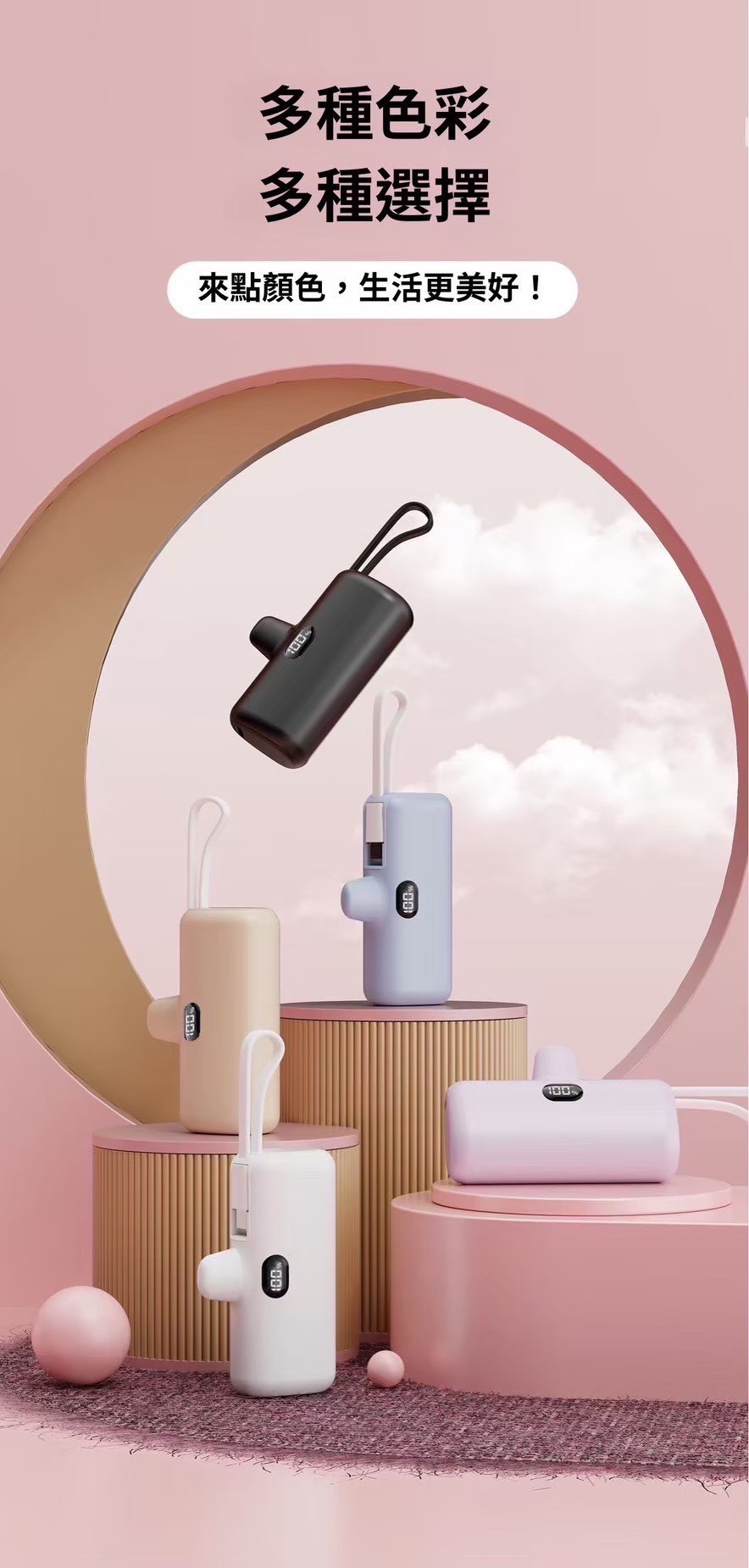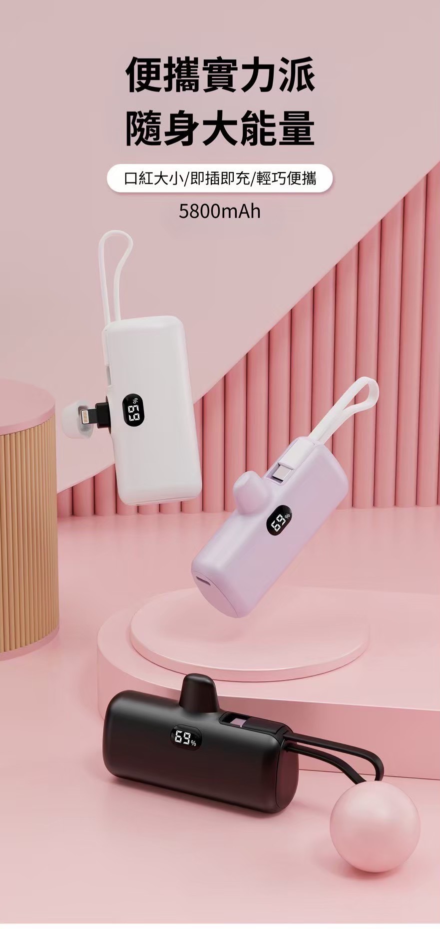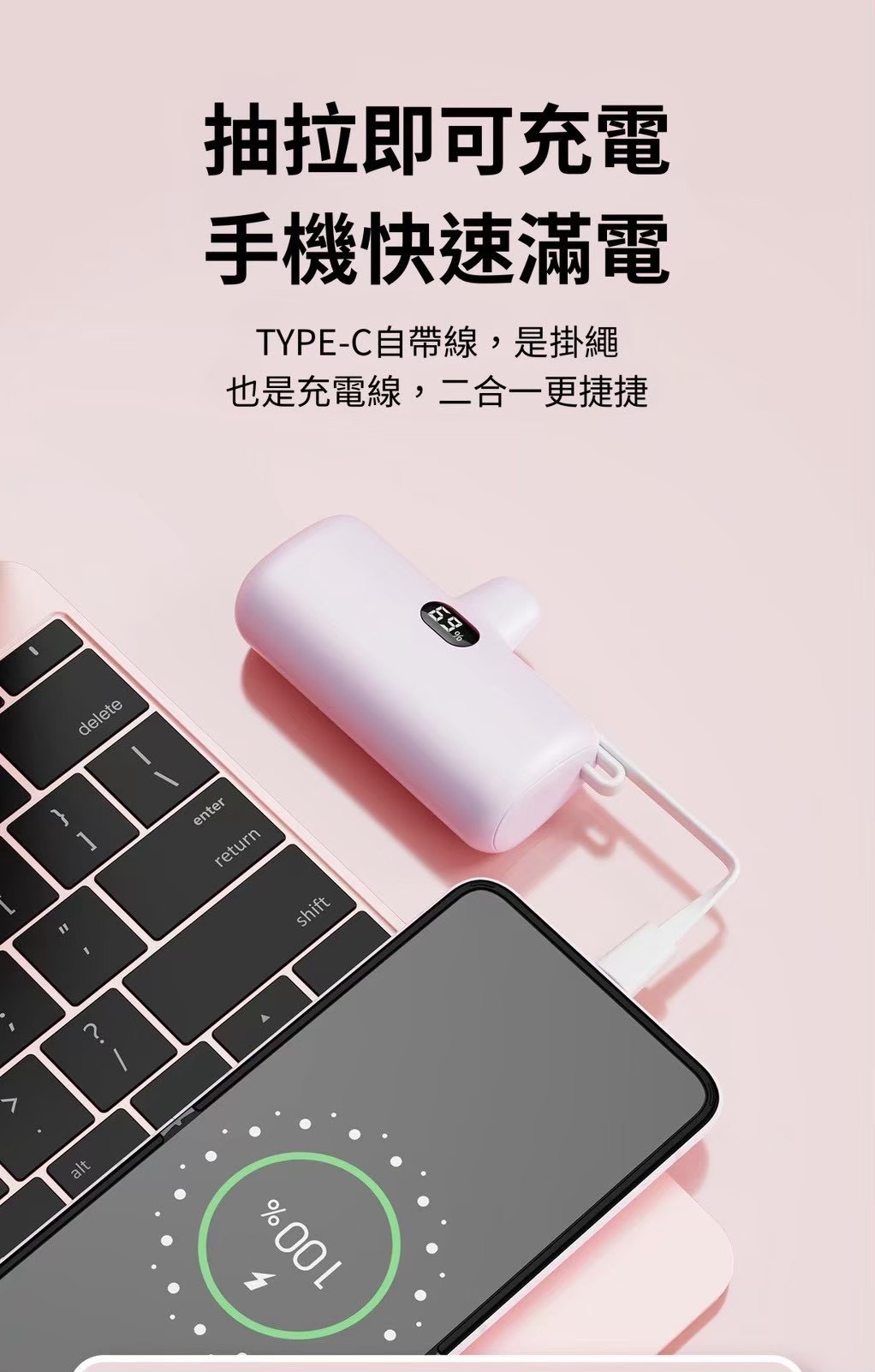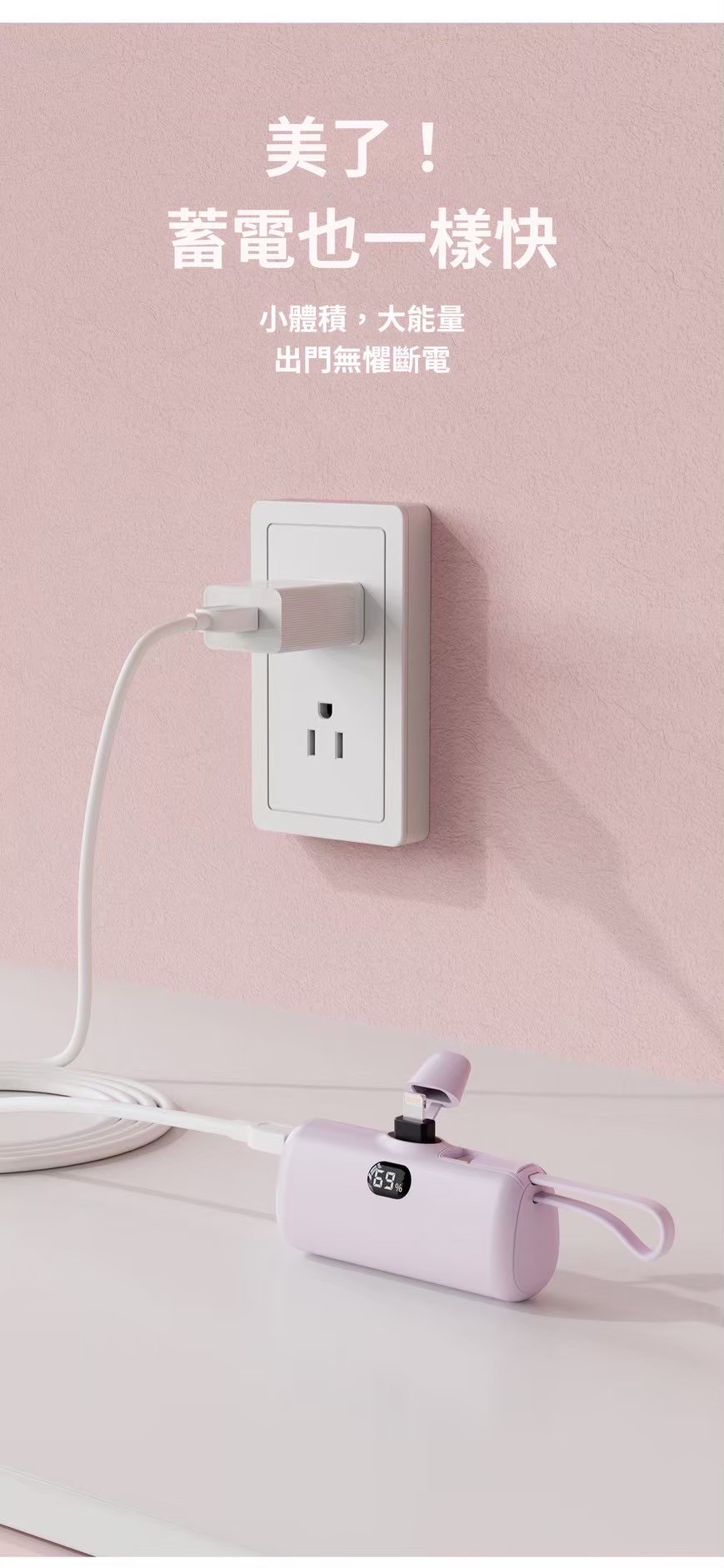 痛點切入: 傳統行動電源太重、線材纏繞麻煩。